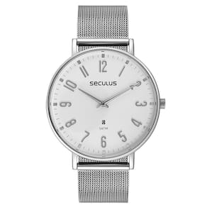 Relógio seculus masculino ref: 77181g0svna1 casual mesh prateado Descrição do produto: Vidro: cristal mineral Funções: analógico, calendário Resistencia à água: 50 m Características: com caixa de aço inoxidável e pulseira de malha de aço mesh Diâmetro da caixa: 4,4 cm Fundo Alimentação do maquinário: bateria Mostrador branco com todos os números de 2 anos Marca: Não Informado