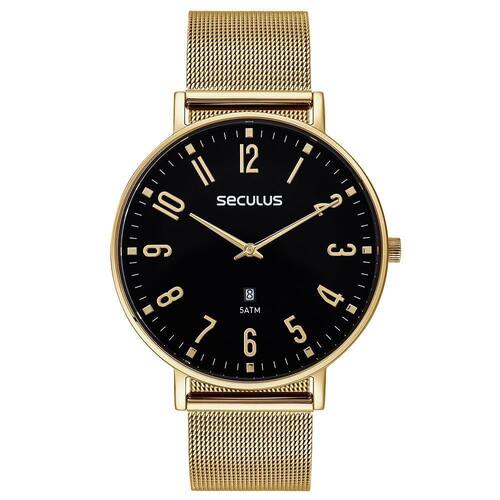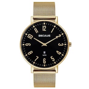 Vidro: cristal mineral Funções: analógico, calendário Resistencia à água: 50 m Características: com caixa de aço inoxidável e pulseira de malha de aço mesh Diâmetro da caixa: 4,4 cm Fundo de pressão Alimentação do maquinário: bateria Mostrador preto com todos os números