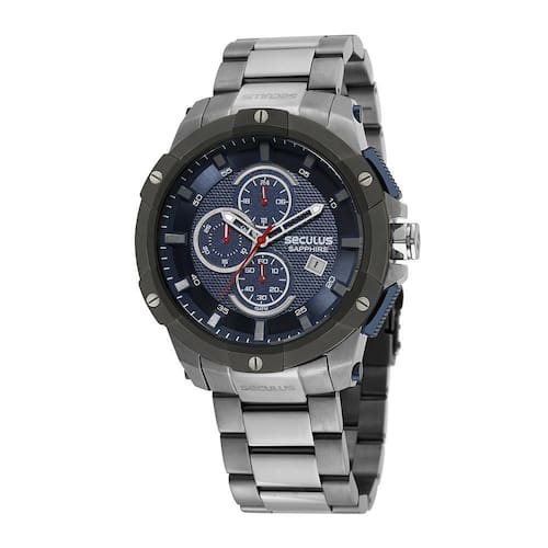Especificações do produtoMaterial da Pulseira: AçoMecanismo: AnalógicoGênero: MasculinoCor do Mostrador: PretoCor da Pulseira: CinzaMaterial do Visor: Cristal de Safira