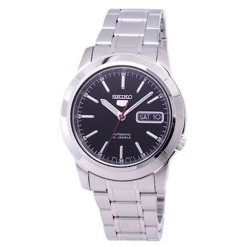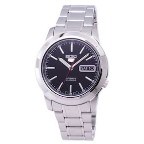 Características do relógio masculino Seiko 5 Automatic SNKE53 SNKE53K1 SNKE53K: Caixa de aço inoxidável Pulseira de aço inoxidável Calibre de movimento automático: 7S26 21 Jewels Hardlex Crystal Black Dial Display analógico Mãos e marcadores luminosos Display de dia e data Exibição de dia e data Pull/Push Crown See Through Capa Fecho de implantação traseira Resistência à água 30 M Diâmetro aproximado da caixa: 38 mm Espessura aproximada da caixa: 10 mm