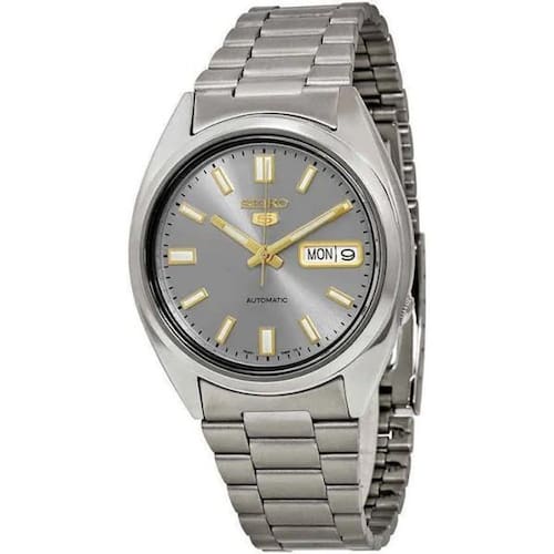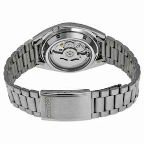 Relógio seiko 5 automático cinza snxs75 Caixa de aço inoxidável com uma pulseira de aço inoxidável. Painel frontal fixo de aço inoxidável. Mostrador cinza com ponteiros em tom de ouro amarelo luminoso e marcadores de horas de índice. Marcadores de minutos em torno da borda exterior. Tipo de discagem: analógico Ponteiros e marcadores luminescentes Exibição de dia e data na posição de 3 horas Cristal hardlex resistente a arranhões Puxe / empurre a coroa Caixa de fundo esqueleto Forma redonda Tamanho da caixa: 37 mm Espessura da caixa 12 mm Largura da pulseira 18 mm Resistente à água a 30 metros Estilo de relógio casual Etiqueta do relógio:japan movt Ean: 7891529974513