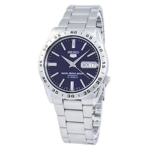 Características do relógio masculino Seiko 5 Automatic SNKD99 SNKD99K1 SNKD99K: caixa de aço inoxidável Pulseira de aço inoxidável Calibre de movimento automático: 7S26 21 joias Hardlex Crystal Blue Dial analógico Display analógico Mãos e marcadores luminosos Exibição de dia e data Puxe/Push Crown See Through Fecho dobrável traseiro Resistência à água Diâmetro aproximado da caixa: 37 mm Espessura aproximada da caixa: 12 mm