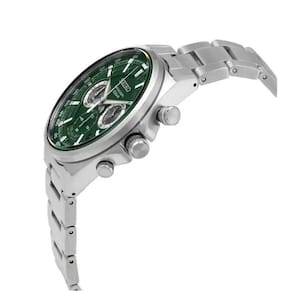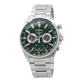 Caixa de aço inoxidável com uma pulseira de aço inoxidável. Moldura fixa em aço inoxidável. Mostrador verde com ponteiros luminosos em tom prateado e marcadores de horas. Marcadores de minutos em torno da borda exterior. Taquímetro ao redor da moldura. Tipo de discagem: analógico. Ponteiros e marcadores luminescentes. Exibição da data entre as posições 4 e 5 horas. Cronógrafo - três submostradores exibindo: 60 segundos, 60 minutos e 24 horas. Movimento de quartzo seiko calibre 8t63. Cristal hardlex resistente a arranhões. Caixa sólida de volta. Formato redondo da caixa. Tamanho da caixa: 41 mm. Espessura da caixa: 12,3 mm. Largura da banda: 22 mm. Dobre o fecho com uma liberação de segurança. Resistente à água até 100 metros/330 pés. Funções: cronógrafo, taquímetro, data, hora, minuto, segundo. Vestido estilo relógio. Etiqueta do relógio: japan movt. Relógio masculino seiko cronógrafo quartzo verde com mostrador em aço inoxidável ssb405p1.