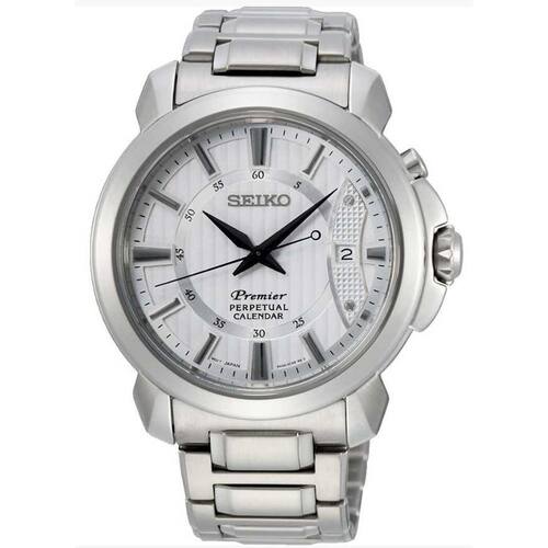 máquina Japonesa movida à bateria / sistema de energia quartz / Seiko Calibre 6A32 mecanismo Analógico com 3 ponteiros calendário perpetuo com regulagem automática até 2100 mês e dia caixa do relógio em aço com acabamento fosco prateado vidro de safira pulseira de aço inox com acabamento prateado fecho em aço padrão da pulseira mostrador branco tampa posterior rosqueada resistência à água 100M