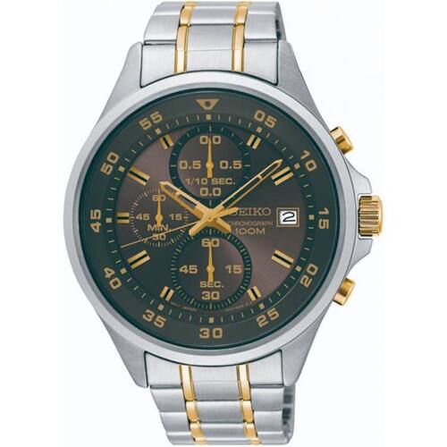 Relógio Seiko SKS631B1 G2SK cronógrafo masculino bicolor mostrador grafite Referência: SKS631B1 G2SK Marca: Seiko Mecanismo: Analógico / Bateria Cor da Caixa: Prata Material da Caixa: Aço Cor da Pulseira: Prata e Dourado Material da Pulseira: Aço Cor do Mostrador: Grafite Tipo do vidro: Cristal Mineral HARDLEX Pulseira ajustável: Sim Tipo de fecho: Fecho ajustável com 2 botões Medida - Largura da Caixa: 4,2 cm Medida - Espessura da Caixa: 1,1 cm Formato da Caixa: Redondo Resistência à Água: 10 ATM Mais informações: Cronógrafo; Calendário; Fundo Rosqueado; Calibre 4T57. Fornecedor: Orient Relógios da Amazônia Ltda. do Relógio: 1 ano diretamente com o Fornecedor, oferecida em toda a rede de Assistências Técnicas e Postos Autorizados da marca Seiko. OBS: Os relógios Seiko, no Brasil, são importados e/ou fabricados pela Orient Relógios da Amazônia Ltda.; desta forma, a assistência técnica da marca Seiko é realizada pela assistência técnica da marca Orient em território nacional. Acompanha o produto: Estojo Seiko; Manual e Certificado de ; .