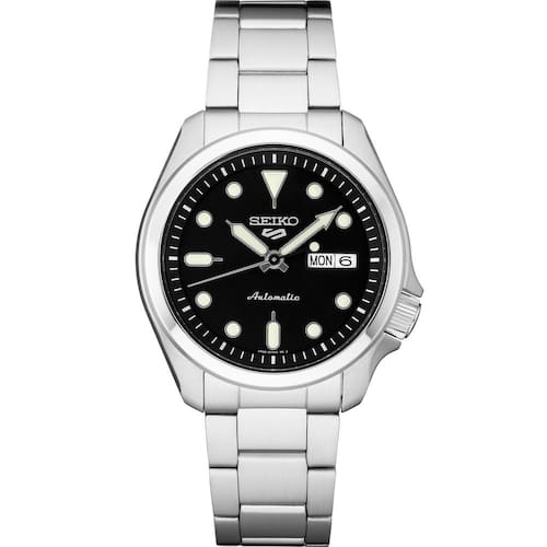 Mostre seu estilo. Faça sua jogada. Por mais de 50 anos, a Seiko 5 Sports oferece níveis consistentemente altos de confiabilidade, durabilidade e desempenho. Para uma cronometragem confiável em sua vida cotidiana, o excepcional relógio esportivo masculino SRPE55 é alimentado por um movimento automático com uma reserva de marcha de aproximadamente 41 horas e possui um calendário de dia/data, ponteiros e marcadores LumiBrite e um fundo de caixa transparente. Com uma caixa e pulseira duráveis de aço inoxidável e um impressionante mostrador preto, este relógio versátil é resistente à água de 100 metros, perfeito para seu estilo, não importa o que seu dia lhe reserva.