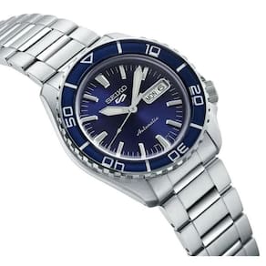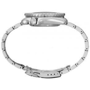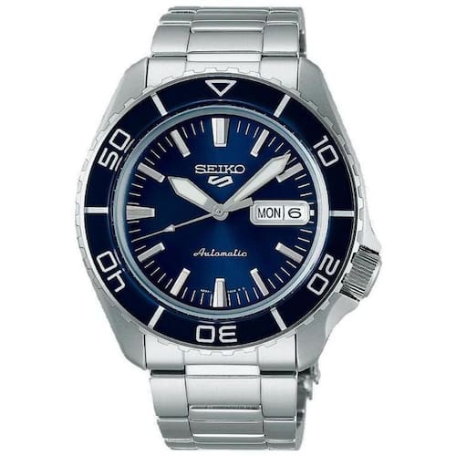 A Seiko do Japão é uma das marcas de relógios mais inovadoras do mundo, talvez a maior. Sempre a frente do mercado, a Seiko criou e ainda cria modelos sofisticados e com alta tecnologia. Alguns modelos são tão futuristas que é possível encontrar somente nos relógios Seiko, fazendo da marca uma empresa pioneira e formadora de opinião de seu segmento. Empresa focada na preservação do meio ambiente, busca sempre minimizar o impacto do produto de seus relógios na natureza, tanto é que essa característica já lhe assegurou um certificado ISO 14001. Atualmente a Seiko remete uma elegância impar em seus produtos, uma marca de relógios luxuosos e tecnológicos. Desde o primeiro modelo em 1881 até hoje a Seiko cresce vertiginosa e exponencialmente. Se você pensa em adquirir um relógio para a vida toda, a Seiko é uma excelente opção. Relógio Masculino SEIKO Automático SRPK97B1 D1SX máquina Japonesa mecânica SEIKO Time Corp. CALIBRE 4R36 24 Jewels mecanismo automático com 3 ponteiros caixa do relógio em aço inoxidável pulseira em aço inoxidável fecho em aço inoxidável de 3 dobras com botões laterais para abertura e trava de segurança aro giratório catraca unidirecional mostrador azul relógio com calendário, dia do mês e dia da semana coroa simples padrão sem rosca tampa posterior rosqueada com vidro de cristal para visualização do mecanismo resistência à água 100 metros Detalhes técnicos: Pulseira: largura de 22 mm Peso: 168 gramas Caixa: 14.2 mm espessura Caixa: 42.5 mm diâmetro Caixa: l2l de 46.0 mm Enrolamento Manual: Sim Precisão: +45 a -35 segundos por dia Reserva de energia: 41 horas Vibração por hora: 21.600 Funções: hora, calendário dia do mês e semana Vidro: cristal Hardlex Fundo: transparente em cristal, mecanismo aparente, Rosqueado resistência à água de até 100 metros Coroa: simples Informações adicionais: Bisel unidirecional, índex e ponteiros de hora e minutos com luminosidade. Marca: Não Informado