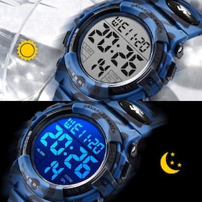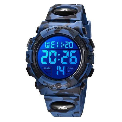 Relógio infantil, relógio masculino, digital, esporte, cronógrafo multifuncional ao ar livre, LED 50M, calendário de alarme à prova d'água, relógio analógico para crianças com pulseira de silicone (azul escuro)
