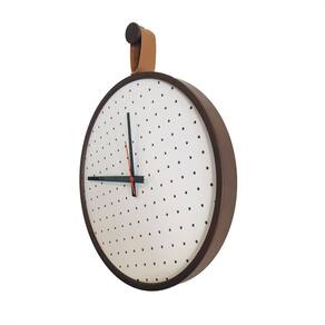 Relógio Short Strip Marrom Alça Caramelo Mostrador Branco Perfurado 40 cm Moldura em Alumínio que proporciona leveza ao produto, e permite acabamento em pintura epóxi-pó não enferruja .