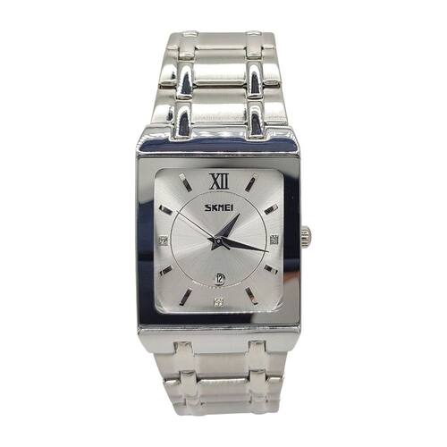 Relógio Skmei Analógico Quadrado Chique Resistente Água 3atm - Cor: Branco e Prata