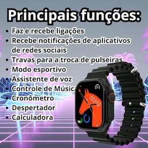 O relógio inteligente completo que você procura! Com design moderno e cheio de funcionalidades, ele une tecnologia, estilo e praticidade no seu dia a dia. Ideal para quem deseja estar sempre conectado, cuidar da saúde e ter mais comodidade.