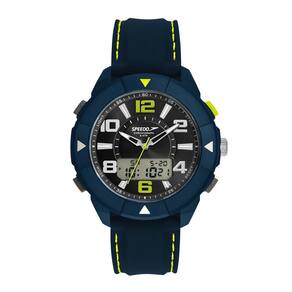 Características: com caixa em Policarbonato Azul e pulseira em Silicone Azul