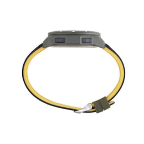 Funções: digital, iluminação, alarme, cronógrafo, timer, dual time Resistência à água: 50 m Diâmetro da caixa: 47 mm Características: com caixa em policarbonato verde e pulseira em silicone preto/laranja Fundo parafusado Vidro: acrílico Aro fixo verde Alimentação do maquinário: bateria Garantia de 1 ano