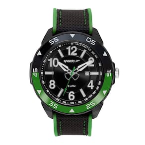 Características: com caixa em Policarbonato Preto e pulseira em Silicone Verde com detalhe em tecido Preto