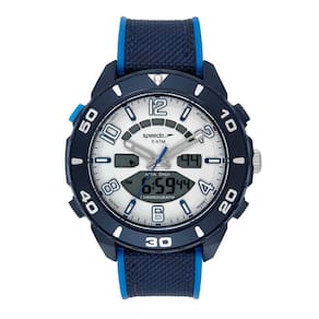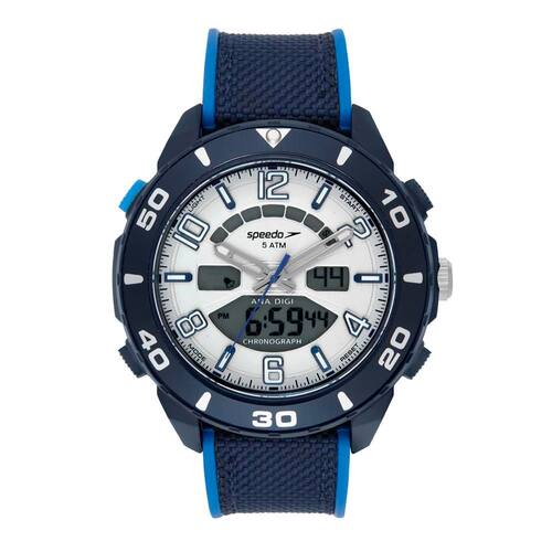 Características: com caixa em Policarbonato Azul e pulseira em Silicone Azul Claro com detalhe em tecido Azul Escuro