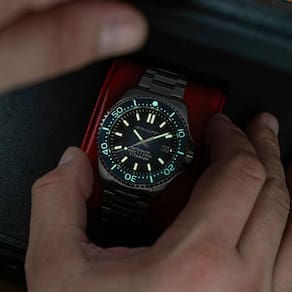 Relógio Spinnaker Tesei Titanium Automatic Tatical Blue SP-5084-55 A coleção Tesei se inspira no mundo da engenharia oceânica utilizando materiais de alto desempenho especificamente utilizados em engenharia náutica capacidades - como titânio e bronze. Um relógio de ferramenta no verdadeiro sentido da palavra, o Tesei Titanium é um equipamento essencial para todas as missões, táticas ou não. Leve e fácil de usar com um nível impenetrável de resistência, este relógio representa uma sinergia convincente de materiais de relojoaria Especificações Técnicas Mecanismo: Japão Miyota 9039 Automático Material da caixa: Titânio Diâmetro da Caixa: 42mm Expessura da Caixa: 13mm Lug to Lug: 51mm Lente: Lente de safira com revestimento anti-reflexo Índice: índice aplicado com Swiss Super Luminova Moldura: moldura unidirecional com placa de alumínio verde Cor do Mostrador: Azul Pulseira: pulseira de titânio de 22 mm com fivela dobrável com trava de segurança e botão Funções: aro rotativo unidirecional e calendário Resistência à água: 200m : internacional de 2 anos.
