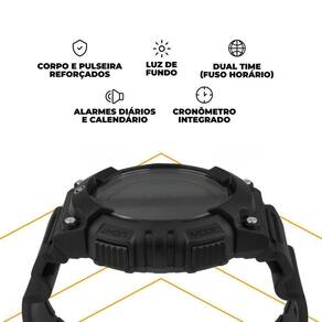 O Tech Armor é mais do que um simples relógio. O dispositivo da Gorila não só marcar as horas, como também possui cronômetro e calendário integrados; alarmes programáveis; luz de fundo e dual time. Tudo isso associado a um design arrojado, fabricado com materiais duráveis e resistentes à água. Não perca um segundo e adquira já o seu!