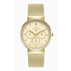 Relógio technos 6p29alw/1d 6p29alw 1d dourado aço 6p29 Relógio de pulso Technos 6p29alw/1d Caixa em aço inox dourado Pulseira tipo esteira em aço inox dourado Ponteiro de horas e minutos Calendário - ponteiro dia do mês Ponteiro dia da semana Ponteiro 24hrs Vidro cristal mineral Prova dágua 5 atm - 50 metros Fundo rosqueado Fecho trava lateral dupla Largura da caixa: 39 mm Largura da caixa com coroa: 41,8 mm Espessura da caixa: 8,8 mm Largura da pulseira: 18 mm Acompanha Estojo technos Manual de instrução Certificado de Marca: Não Informado Ean: 7891530825293