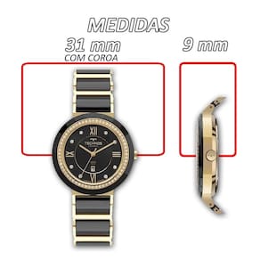Relógio technos ceramic saphire dourado feminino 2036mro 1p coleção cerâmica cor dourado e preto formato redondo tipo de tela analógico resistência 50 metros calendário sim material do vidro safira material da caixa aço material da pulseira aço e cerâmica tamanho da caixa 31 mm espessura da caixa 9 mm tamanho da pulseira 20 cm peso 72 g acompanha estojo , garantia e. Porque você deve comprar com a clock brasil somo uma empresa que atua há 8 anos no mercado, oferecendo os melhores produtos e preços, sempre com muita elegância e sofisticação para a satisfação de cada cliente. Todos os produtos com 12 meses de garantia de fábrica. Acompanham estojo e são sempre muito bem embalados para melhor conserva-los em transporte, além de embrulhados para presente com muito carinho para melhor atendê-los e surpreende-los também. Estamos à disposição. Att. Equipe clock brasil