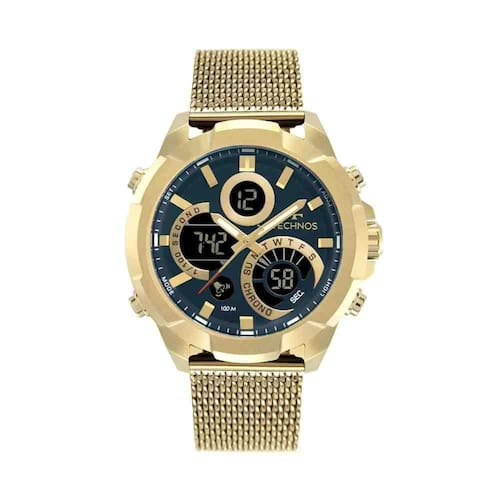 Estamos há mais de 50 anos no mercado oferecendo uma ampla variedade de acessórios, incluindo relógios e óculos de sol, com as melhores marcas e estilos. Além disso, a nossa equipe é treinada para oferecer um atendimento excepcional, garantindo que cada cliente seja tratado com o respeito e a atenção que merece.Realizando a compra, não deixe de nos avaliar Sua opinião é muito importante para aperfeiçoar cada vez mais o nosso trabalho.ESPECIFICAÇÕES TÉCNICAS- Marca: Technos- Linha: Digitech- Referência: W23721AAE/1A- Gênero: Masculino - Tipo de mostrador: Analógico e digital- Funções: Calendário digital; Cronômetro digital; Alarme; Timer; Aviso de hora cheia função chime ; Iluminação de fundo- Tipo de fecho: Dobrável- Cor da caixa: Dourado- Cor do mostrador: Azul-escuro- Cor da pulseira: Dourado- Material da caixa: Aço- Material da pulseira: Aço- Largura da caixa: 4,8cm- Espessura da caixa: 1,2cm- Resistência à água: 10 ATM 100m - : 12 meses Marca: Não Informado