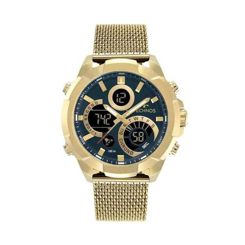 Estamos há mais de 50 anos no mercado oferecendo uma ampla variedade de acessórios, incluindo relógios e óculos de sol, com as melhores marcas e estilos. Além disso, a nossa equipe é treinada para oferecer um atendimento excepcional, garantindo que cada cliente seja tratado com o respeito e a atenção que merece.Realizando a compra, não deixe de nos avaliar Sua opinião é muito importante para aperfeiçoar cada vez mais o nosso trabalho.ESPECIFICAÇÕES TÉCNICAS- Marca: Technos- Linha: Digitech- Referência: W23721AAE/1A- Gênero: Masculino - Tipo de mostrador: Analógico e digital- Funções: Calendário digital; Cronômetro digital; Alarme; Timer; Aviso de hora cheia função chime ; Iluminação de fundo- Tipo de fecho: Dobrável- Cor da caixa: Dourado- Cor do mostrador: Azul-escuro- Cor da pulseira: Dourado- Material da caixa: Aço- Material da pulseira: Aço- Largura da caixa: 4,8cm- Espessura da caixa: 1,2cm- Resistência à água: 10 ATM 100m - : 12 meses Marca: Não Informado