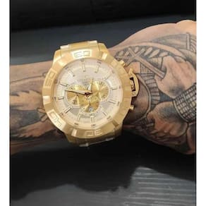 Características - composição do vidro: cristal mineral - material da caixa: aço - cor da caixa: dourado - material da pulseira: aço - cor da pulseira: dourado - bateria