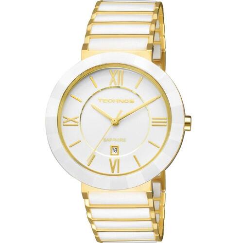 Relógio Technos Elegance Ceramic Sapphire - 2015CE/4B Caixa Em Aco, Coroa Estampada Com Logomarca Technos, Pulseira Em Cerâmica Branca Com Filete Dourado Ao Redor De Cada Elo, Analógico, Datador, Ponteiro Dourado, Cor Índex: Dourado, Resistência A Água: 50 Metros (5 Atm) Tipo De Vidro: Safira,