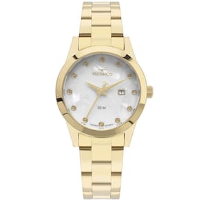 Descrição do Produto: Caixa de Aço Inox Pulseira de Aço Inox Fundo de Pressão Resistente à Água 5 Atm Diâmetro / Largura da Caixa: 32.00 MM Vidro de Cristal Mineral Funções: Analógico, Calendário Maquina Japonesa Alimentação do Maquinário: Bateria Mostrador Madreperola Branca com pedras