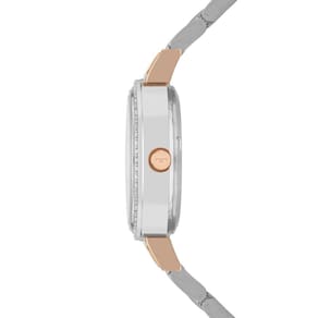 Relógio Boutique apresenta um novo lançamento clássico. Apresenta aplicação de pedras no aro externo e interno, e no mostrador de fácil leitura na cor prata, que conta com numeração romana nos marcadores de hora. Produto 100% em aço inoxidável, banhado em bicolor, com máquina quartz Japonesa Miyota e resistência à água de 50 metros.