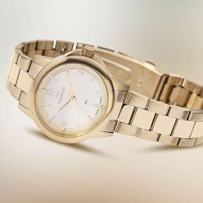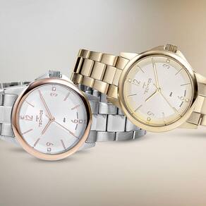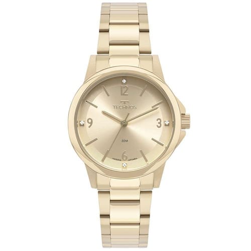 O Relógio Technos Boutique traz sua versão atualizada do modelo best-seller da linha feminina, agora com pulseira de aço com design clássico em 3 links, que une conforto e elegância. O mostrador minimalista em dourado ganha charme extra com aplicação de pedras delicadas ao redor da numeração arábica nas posições 3, 6, 9 e 12 horas, garantindo um visual sofisticado e moderno.