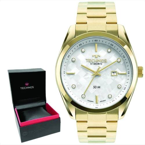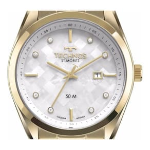 Prezado Cliente, nós da Relogios S.A. Todos os nossos produtos possuem assistência técnica em todo o Brasil. Quaisquer perguntas e dúvidas, teremos o maior prazer em atendê-los. Aqui na Relógios S.A., você terá as melhores condições para a sua compra: Certeza de um produto ; Nossos relógios são totalmente revisados antes do embarque, por uma equipe especializada; por 12 meses contra defeito de fabricação diretamente com o fabricante; Sobre o Relógio Parabéns, foi uma ótima escolha Vou te contar um pouco mais sobre ele. Esse relógio é um Technos St. Moritz feminino muito elegante, com caixa e pulseira em aço na cor dourada. Modelo clássico com fundo de madrepérola com cristais Especificação Técnicas: Tamanho da Caixa: 42 mm Espessura da Caixa: 10 mm Largura da Pulseira: 20 mm Vidro: Cristal Mineral Peso Aproximado: 121 g Material da Caixa: Aço Inox Material da Pulseira: Aço Inox Mecanismo: Analógico Calendário: Sim Resistência a Água: Sim, 5 ATM : 1 Ano Acompanha: Manual Em Português Cerificado De Estojo do fabricante Marca: Não Informado Ean: 7891530677250