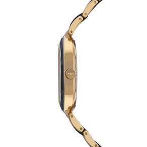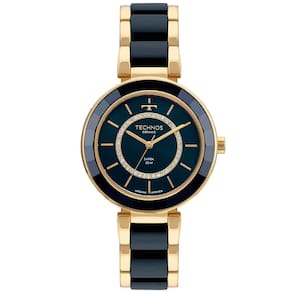 Relógio Ceramic apresenta um novo lançamento de design sofisticado, definido pela lente de safira e aplicação de cerâmica. Seu mostrador redondo na cor azul conta com assinatura de linha e aplicação de pedras, além do aro facetado de cerâmica. Sua pulseira é complementada por aço inoxidável e aço com cerâmica. Produto 100% em aço inoxidável, banhado em dourado, máquina quartz Japonesa Miyota e resistência à água de 50 metros.