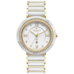 meli_title - Relógio Feminino Technos Ceramic Saphire Dourado E Branco