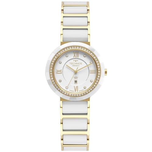 Relógio Technos Feminino Ceramic/saphire Dourado - 2036mrp/1b 2036mrp/1b Novo modelo da linha Ceramic, com aplicação de pedras no aro interno. Seu mostrador também apresenta aplicação de pedras nos marcadores de hora, além da elegante numeração romana e assinatura da linha. Seu diferencial está nos materiais utilizados em sua composição: feito em aço inoxidável em banho dourado, ele apresenta aplicação de cerâmica branca na pulseira e no aro externo, além de possuir Vidro de Safira, ambos altamente resistentes a riscos e arranhões. Produto com máquina quartz japonesa Miyota, tamanho de caixa 30mm e resistência à água de 50m. Banho - Dourado Tipo - Analógico Cor da Caixa - Dourado Material da Pulseira - Aço Cerâmica Formato - Redondo Cor do Mostrador - Branco Tipo de Fecho - Trava Lateral Garantia - 12 meses Cor da Pulseira - Dourado Largura da Caixa (cm) - 3,0 Resistência à Água - 5 ATM meli_title - Relógio Technos Feminino Ceramic/saphire Dourado - 2036MRP/1B Modelo_ML - Relógio Technos Feminino Ceramic/saphire Dourado - 2036MRP/1B Cor - Dourado Tamanho - Pequeno Gênero - Feminino
