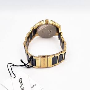 Características Formato do Relógio: Redondo Composição do Vidro: Cristal mineral Material da Caixa: Aço Inox Cor da Caixa: Dourado, Preto Cor do mostrador: Dourado, Preto Material da Pulseira: Aço Inox Cor da Pulseira: Dourado, Preto Mecanismo: Analógico Quartz