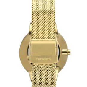 Relógio feminino technos elegance crystal referência technos do brasil 2035mva/1x máquina japonesa movida a bateria / quartz mecanismo analógico com 3 ponteiros caixa do relógio em aço inoxidável dourado pulseira de aço inoxidável dourado fecho com trava lateral de pressão para abertura mostrador dourado / champagne com cristais vidro de cristal mineral coroa simples de pressão padrão sem rosca tampa posterior de pressão resistência à água 5atm 50m