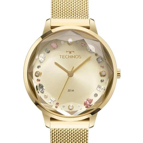Relógio Feminino TECHNOS Elegance Crystal Referência TECHNOS do Brasil 2035MVA/1X máquina Japonesa movida a bateria / quartz mecanismo Analógico com 3 ponteiros caixa do relógio em aço inoxidável dourado pulseira de aço inoxidável dourado fecho com trava lateral para abertura mostrador dourado / champagne com cristais vidro de Cristal Mineral coroa simples padrão sem rosca tampa posterior resistência à água 5ATM 50M Este produto acompanha Manual em Português e , Embalagem de Fabrica e Nacional do Fabricante. Ean: 7891530744129