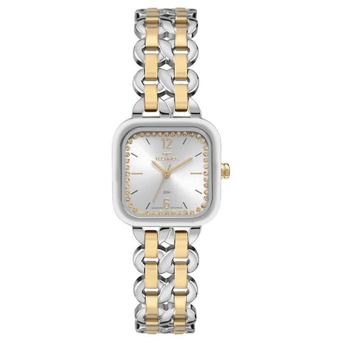 Relógio Technos Feminino Elos Bicolor - 2035nas/1k Relógio Technos Elos com a inovadora pulseira de elos sólidos duplos. Com design moderno, seu mostrador apresenta pedras aplicadas por todo o aro interno e numeração arábica nas posições de 6 e 12 horas. Produto 100% em aço inoxidável, com máquina quartz Japonesa Miyota e resistência à água de 30 metros. Banho - Bicolor Tipo - Analógico Cor da Caixa - Prata Material da Pulseira - Aço Material da Caixa - Aço Formato - Quadrado Cor do Mostrador - Prata Garantia - 12 meses Cor da Pulseira - Bicolor Largura da Caixa (cm) - 2,4 Resistência à Água - 3 ATM plaintext_description_meli - Relógio Technos Feminino Elos Bicolor - 2035NAS/1KRelógio Technos Elos com a inovadora pulseira de elos sólidos duplos. Com design moderno, seu mostrador apresenta pedras aplicadas por todo o aro interno e numeração arábica nas posições de 6 e 12 horas. Produto 100% em aço inoxidável, com máquina quartz Japonesa Miyota e resistência à água de 30 metros. meli_title - Relógio Technos Feminino Elos Bicolor - 2035NAS/1K Modelo_ML - Relógio Technos Feminino Elos Bicolor - 2035NAS/1K Cor - Bicolor Tamanho - Pequeno Gênero - Feminino