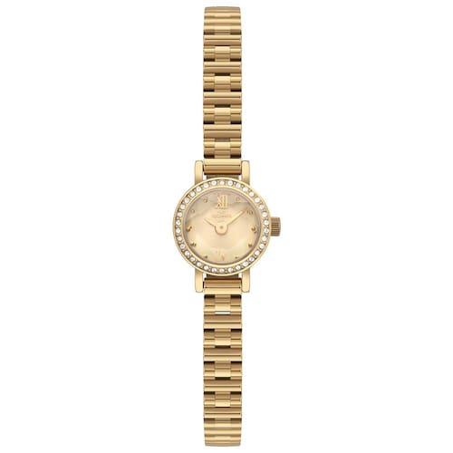 Mostrador dourado com algarismos romanos