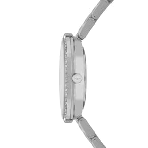 Relógio Technos Feminino Ref: 2025luf/1k Boutique Prateado Descrição do Produto: Caixa de Aço Inox Pulseira de Aço Inox Fundo de Rosqueado Resistente à Água 5 Atm Diâmetro / Largura da Caixa: 31.00 MM Vidro de Cristal Mineral Funções: Analógico Maquina Japonesa Alimentação do Maquinário: Bateria Mostrador Prateado com algarismos romanos e pedras Aro Externo com Pedras de 1 Ano