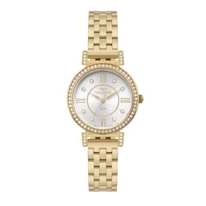 Relógio Technos Feminino Ref: 2035nca/1k Boutique Dourado Descrição do Produto: Caixa de Aço Inox Pulseira de Aço Inox Fundo de Rosqueado Resistente à Água 5 Atm Diâmetro / Largura da Caixa: 28.00 MM Vidro de Cristal Mineral Funções: Analógico Maquina Japonesa Alimentação do Maquinário: Bateria Mostrador Prateado com algarismos romanos e pedras Aro Externo com Pedras de 1 Ano