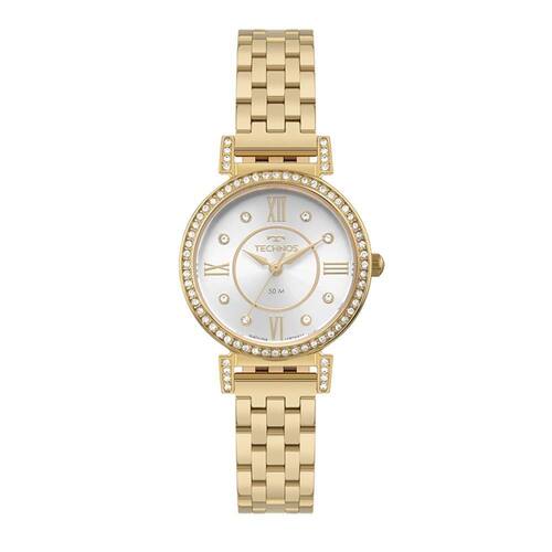 Relógio Technos Feminino Ref: 2035nca/1k Boutique Dourado Descrição do Produto: Caixa de Aço Inox Pulseira de Aço Inox Fundo de Rosqueado Resistente à Água 5 Atm Diâmetro / Largura da Caixa: 28.00 MM Vidro de Cristal Mineral Funções: Analógico Maquina Japonesa Alimentação do Maquinário: Bateria Mostrador Prateado com algarismos romanos e pedras Aro Externo com Pedras de 1 Ano Marca: Não Informado Ean: 7891530866463