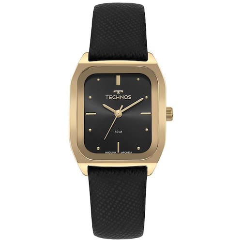 Relógio Technos Feminino Ref: 2035ncp/0p Retangular Dourado Descrição do Produto: Caixa de Aço Inox Pulseira de Couro Preta Fundo Resistente à Água 5 Atm Diâmetro / Largura da Caixa: 27.00 MM x 29.00 MM Vidro de Cristal Mineral Funções: ógico Maquina Japonesa Alimentação do Maquinário: Bateria Mostrador Preto de 1 Ano