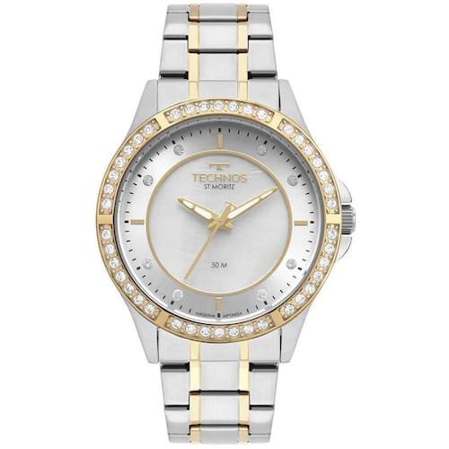 Relógio Technos Feminino Ref: 2036mpx/1b St. Moritz Bicolor Descrição do Produto:Caixa de Aço Inox Pulseira de Aço Inox Fundo de Pressão Resistente à Água 5 Atm Diâmetro / Largura da Caixa: 40.00 MM Vidro de Cristal Mineral Funções: Analógico Maquina Japonesa Alimentação do Maquinário: Bateria Mostrador madreperola Prateado com dourado Garantia de 1 Ano