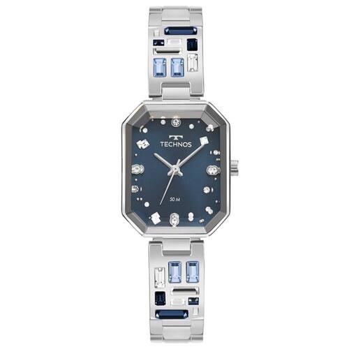 Relógio Technos Feminino Ref: 2036nax/1a Bracelete Retangular Prateado Descrição do Produto: Caixa de Aço Inox Pulseira de Aço Inox Estilo Bacelete com detalhes de pedras Fundo Resistente à Água 5 Atm Diâmetro / Largura da Caixa: 23.00 MM x 29.00 MM Vidro de Cristal Mineral Facetado Funções: Analógico Maquina Japonesa Alimentação do Maquinário: Bateria Mostrador Azul com pedras de 1 Ano Marca: Não Informado