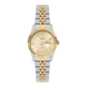 Funções: Analógico, Automático, Permite dar corda pela coroa do relógio, Calendário Duplo (Mensal e Semanal - Com opção em inglês e japonês)