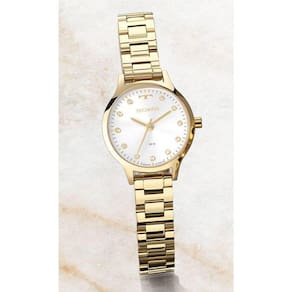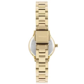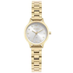 Relógio Technos Feminino Ref: Gl32aj/1k Elegance Mini Dourado Descrição do Produto: Caixa de Aço Inox Pulseira de Aço Inox Fundo de Pressão Resistente à Água 5 Atm Diâmetro / Largura da Caixa: 25.00 MM Vidro de Cristal Mineral Funções: Analógico Maquina Japonesa Alimentação do Maquinário: Bateria Mostrador Prateado com pedras