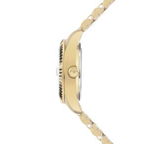 Relógio Technos Feminino Riviera Dourado - 2015cel/1k Relógio Technos Riviera feminino com caixa e pulseira de aço em banho dourado. Enaltecendo a essência dos clássicos, o modelo possui o icônico aro externo corrugado e vidro com lupa de calendário, ambos elementos tradicionais do universo relojoeiro. Além da pulseira diferenciada 5 links, ele apresenta mostrador de cor champanhe, que conta com a aplicação de pedras nos marcadores de hora. Produto 100% em aço inoxidável, com máquina quartz japonesa, calendário e resistência à água de 50m. Banho - Dourado Tipo - Analógico Cor da Caixa - Dourado Material da Pulseira - Aço Material da Caixa - Aço Formato - Redondo Cor do Mostrador - Prata Tipo de Fecho - Trava Lateral Garantia - 12 meses Cor da Pulseira - Dourado Cor - Dourado Gênero - Feminino