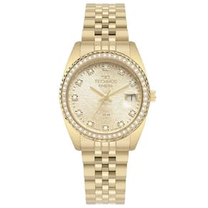Relógio Technos Feminino Riviera Dourado - 2117lfk/1d 2117lfk/1d O novo modelo da linha Riviera apresenta uma inovação no aro externo, construído com a aplicação de pedras cravejadas por toda sua circunferência. Com a sofisticada pulseira de aço inoxidável em 5 links, ele oferece um mostrador elegante, com a aplicação de pedras em todos os marcadores de hora e aplicação de textura diferenciada. Produto 100% em aço inoxidável, com máquina quartz japonesa Miyota, calendário ou multifunção, e resistência à água de 50 metros. Banho - Dourado Tipo - Analógico Cor da Caixa - Dourado Material da Pulseira - Aço Material da Caixa - Aço Formato - Redondo Cor do Mostrador - Dourado Garantia - 12 Meses Cor da Pulseira - Dourado Largura da Caixa (cm) - 3,3 Resistência à Água - 5 ATM plaintext_description_meli - Relógio Technos Feminino Riviera Dourado - 2117LFK/1DO novo modelo da linha Riviera apresenta uma inovação no aro externo, construído com a aplicação de pedras cravejadas por toda sua circunferência. Com a sofisticada pulseira de aço inoxidável em 5 links, ele oferece um mostrador elegante, com a aplicação de pedras em todos os marcadores de hora e aplicação de textura diferenciada. Produto 100% em aço inoxidável, com máquina quartz japonesa Miyota, calendário ou multifunção, e resistência à água de 50 metros. meli_title - Relógio Technos Feminino Riviera Dourado - 2117LFK/1D Modelo_ML - Relógio Technos Feminino Riviera Dourado - 2117LFK/1D Cor - Dourado Tamanho - Pequeno Gênero - Feminino