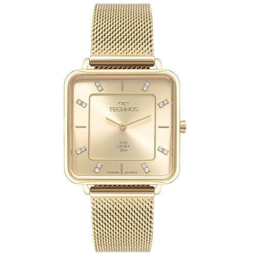 Relógio Technos Feminino Slim Dourado - Gl22ai/1x Gl22ai/1x Relógio Technos Slim feminino, com design monocromático e caixa quadrada. Seu diferencial está na construção da caixa, fina e sofisticada, e em seu mostrador minimalista, com aplicação de pedras nos marcadores de hora e assinatura de linha. Com pulseira de mesh e vidro de safira, é um relógio que, além de ser leve e confortável em qualquer pulso, entrega alta resistência a riscos e arranhões. Produto 100% em aço inoxidável em banho dourado, com máquina quartz japonesa Miyota e resistência à água de 50m. Tamanho de caixa 32mm. Banho - Dourado Tipo - Analógico Cor da Caixa - Dourado Material da Pulseira - Aço Material da Caixa - Aço Formato - Redondo Cor do Mostrador - Champagne Tipo de Fecho - Trava por Pressão Garantia - 12 meses Cor da Pulseira - Dourado Largura da Caixa (cm) - 3,2 Resistência à Água - 3 ATM plaintext_description_meli - Relógio Technos Feminino Slim Dourado - GL22AI/1XRelógio Technos Slim feminino, com design monocromático e caixa quadrada. Seu diferencial está na construção da caixa, fina e sofisticada, e em seu mostrador minimalista, com aplicação de pedras nos marcadores de hora e assinatura de linha. Com pulseira de mesh e vidro de safira, é um relógio que, além de ser leve e confortável em qualquer pulso, entrega alta resistência a riscos e arranhões. Produto 100% em aço inoxidável em banho dourado, com máquina quartz japonesa Miyota e resistência à água de 50m. Tamanho de caixa 32mm. meli_title - Relógio Technos Feminino Slim Dourado - GL22AI/1X Modelo_ML - Relógio Technos Feminino Slim Dourado - GL22AI/1X Cor - Dourado Tamanho - Pequeno Gênero - Feminino